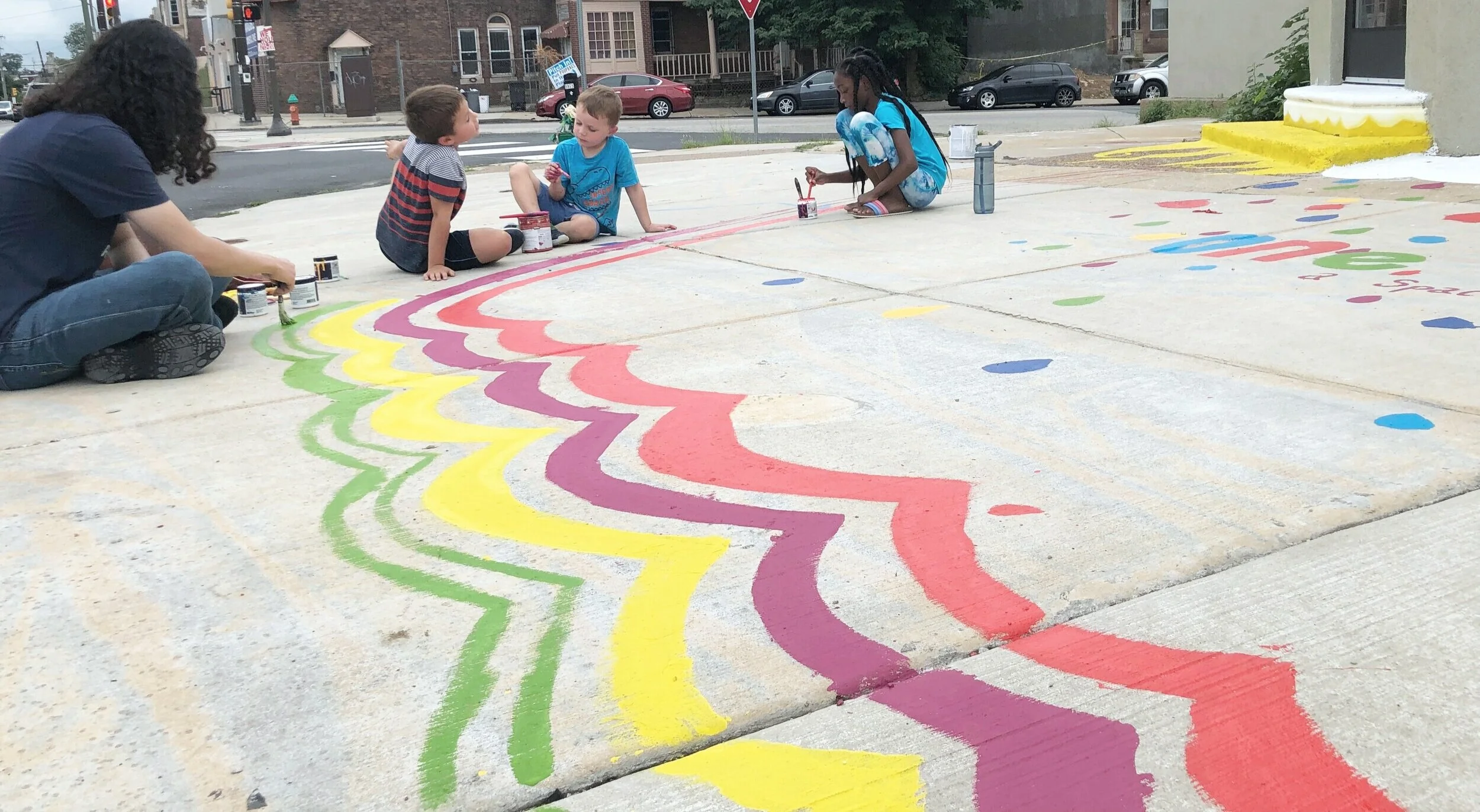 Our K-12 artists will help add to our in progress murals outside that span the entire building.